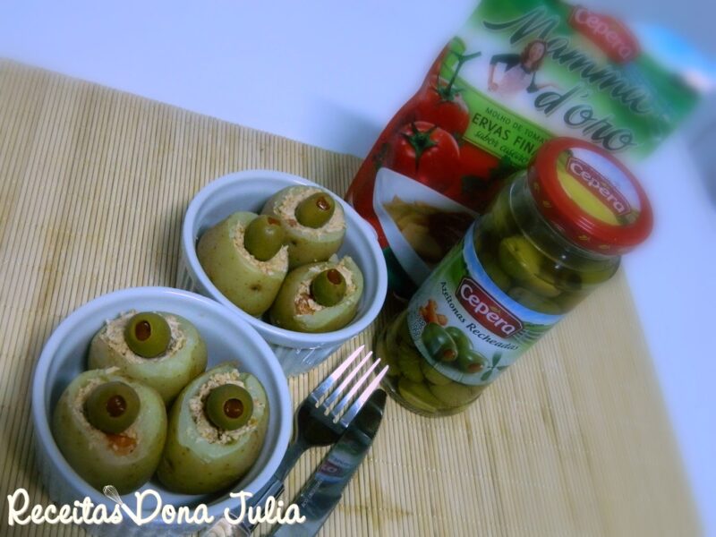 Coloque o recheio e por cima uma azeitona recheada CEPÊRA.
