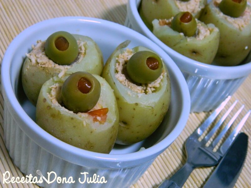 Nada mais é do que mini batatas recheadas, super fácil e rápido de fazer, sem complicação,e você pode rechear a seu gosto. Em casa a criançada adora.
