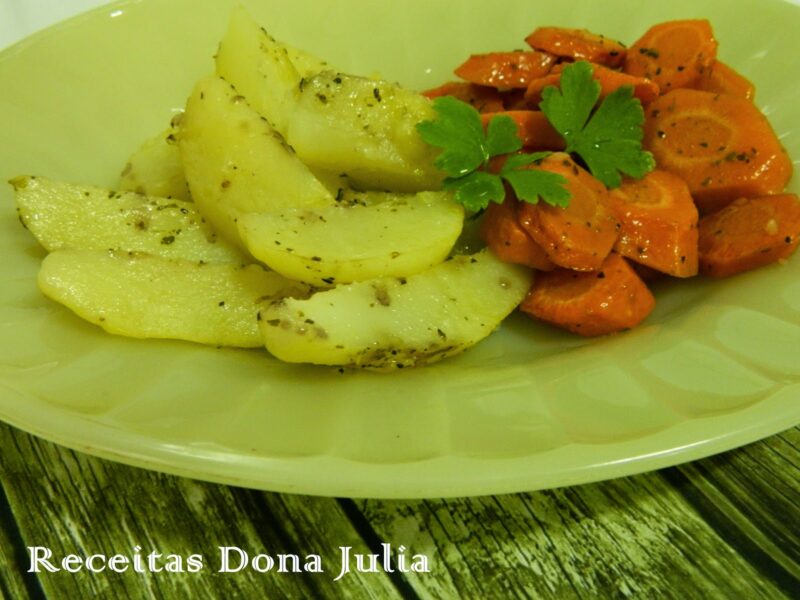 Batata e cenoura uma paixão nacional quem não gosta? principalmente de batata frita. Mas pensando na saúde da família to tentando evitar frituras ao maximo.Ja tinha tentado assar batatas e cenouras no forno, mas não tinha dado muito certo, grudava tudo na assadeira, coloquei papel manteiga e nada, ai de tanto tentar, deu certo.
