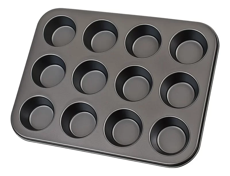 “Para cupcakes perfeitos e com visual profissional, a forma de 12 cavidades é essencial. Ela mantém as forminhas de papel no lugar, garantindo que os bolinhos cresçam para cima e fiquem todos exatamente do mesmo tamanho. Feita em material resistente e antiaderente, ela distribui o calor por igual, resultando em massas fofinhas e um cozimento uniforme em cada unidade!”