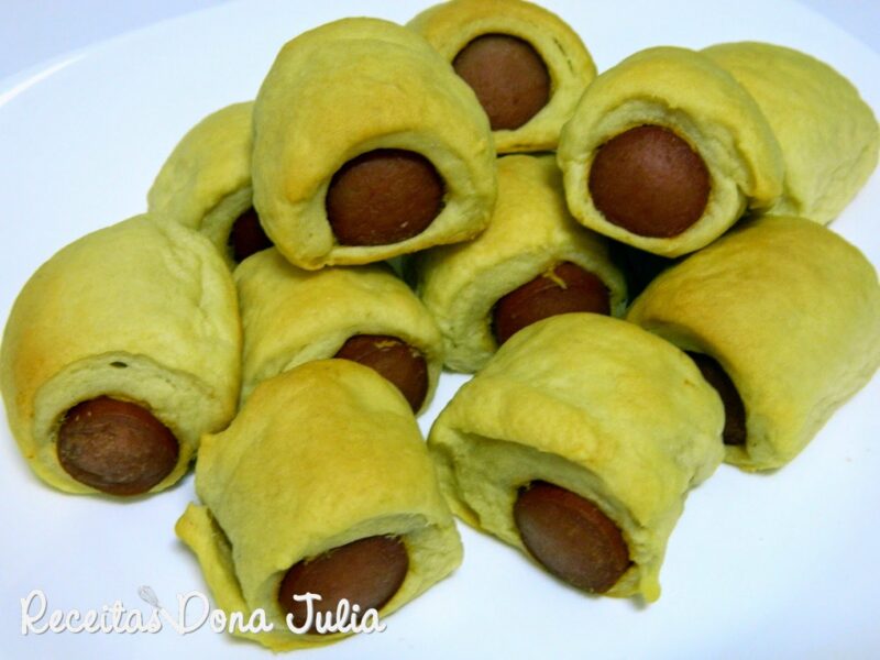 Depois é só abrir a massa estique com um rolo coloque a salsicha enrole como um rocambole e corte no tamanho desejado, você pode usar esta massa e colocar o recheio de sua preferência.