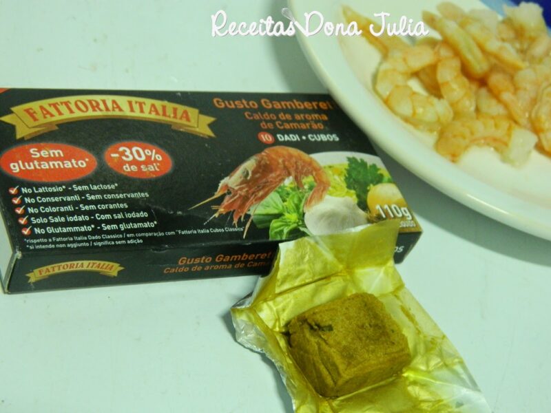 1 e 1/5 litros de caldo de camarão (eu usei água com um tablete de Caldo de camarão FATTORIA ITALIA da LATINEX Importadora)