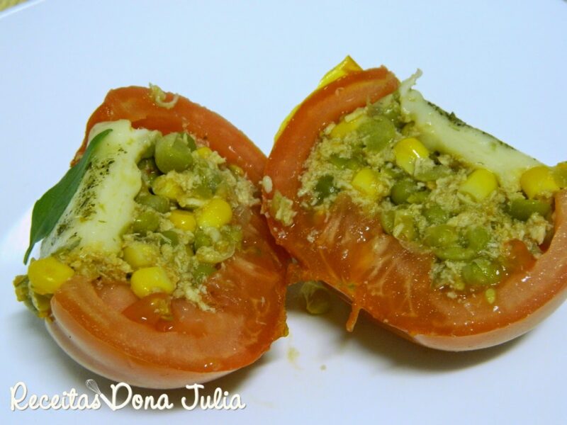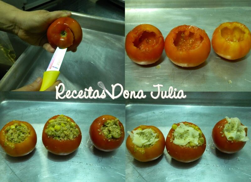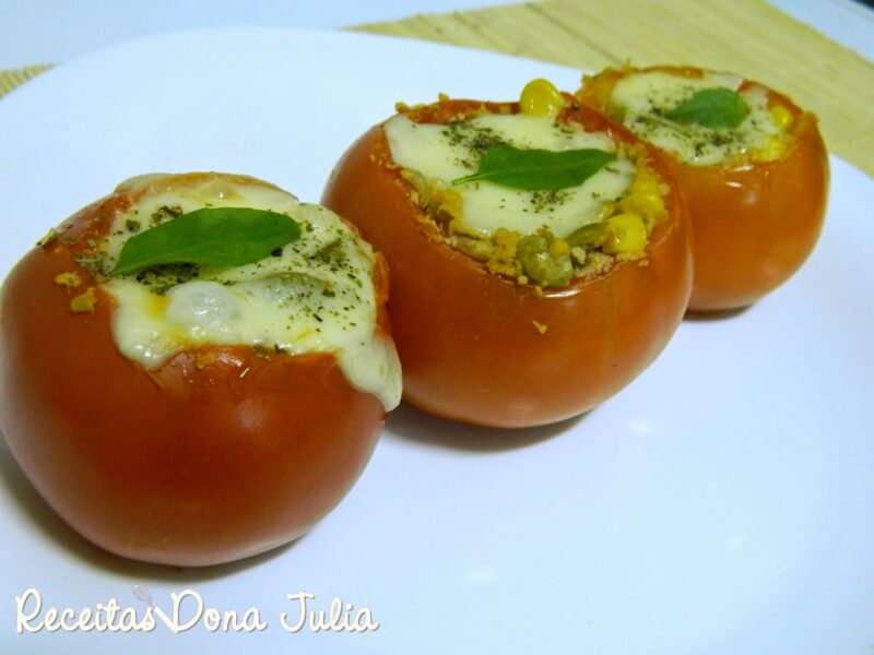Adoro uma saladinha com tomates, para acompanhar as refeições, mas ontem queria dar uma mudada, então surgiu a ideia de rechear os tomates, e olha o resultado, de dar água na boca, ficaram uma delicia. Muito simples, com ingredientes que com certeza você tem ai na geladeira, da uma cara nova na sua refeição, surpreenda.